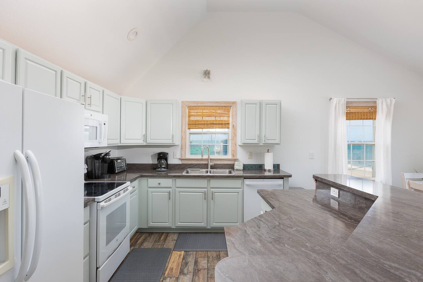 Salt & Sand was built with together-time in mind — and enough elbow room when you need a break from all that togetherness. The reverse floor plan puts the views where they belong: front and center. The top floor features an open kitchen, dining, and living space with ocean views that make you forget all about to-do lists. You’ll find a full kitchen for pancake mornings, seafood feasts, and late-night snacks. The cozy living area has a Smart TV, comfy seating, and direct deck access — perfect for catching a sunrise or soaking in the 3-season hot tub under the stars. Bedrooms include a king suite with private bath, two queen rooms, and two bunk rooms with a twin-over-full bunk for the kids or young at heart. There’s fast Wi-Fi if you must check in with the real world, and a washer/dryer, outdoor shower, and plenty of hangout space when the beach towels start to pile up.