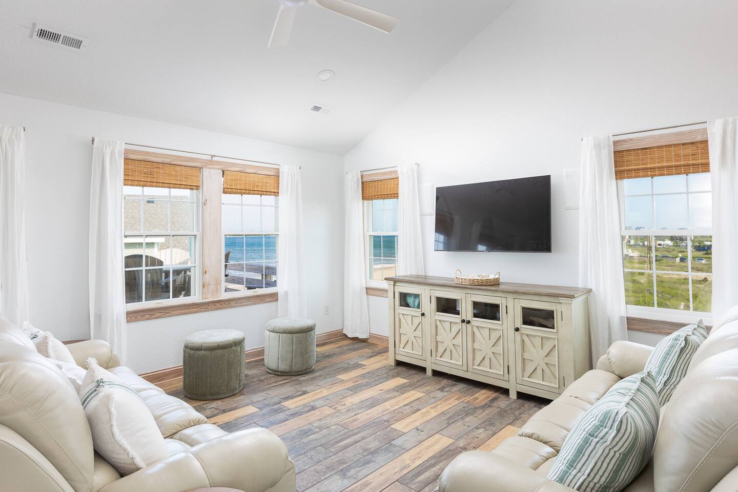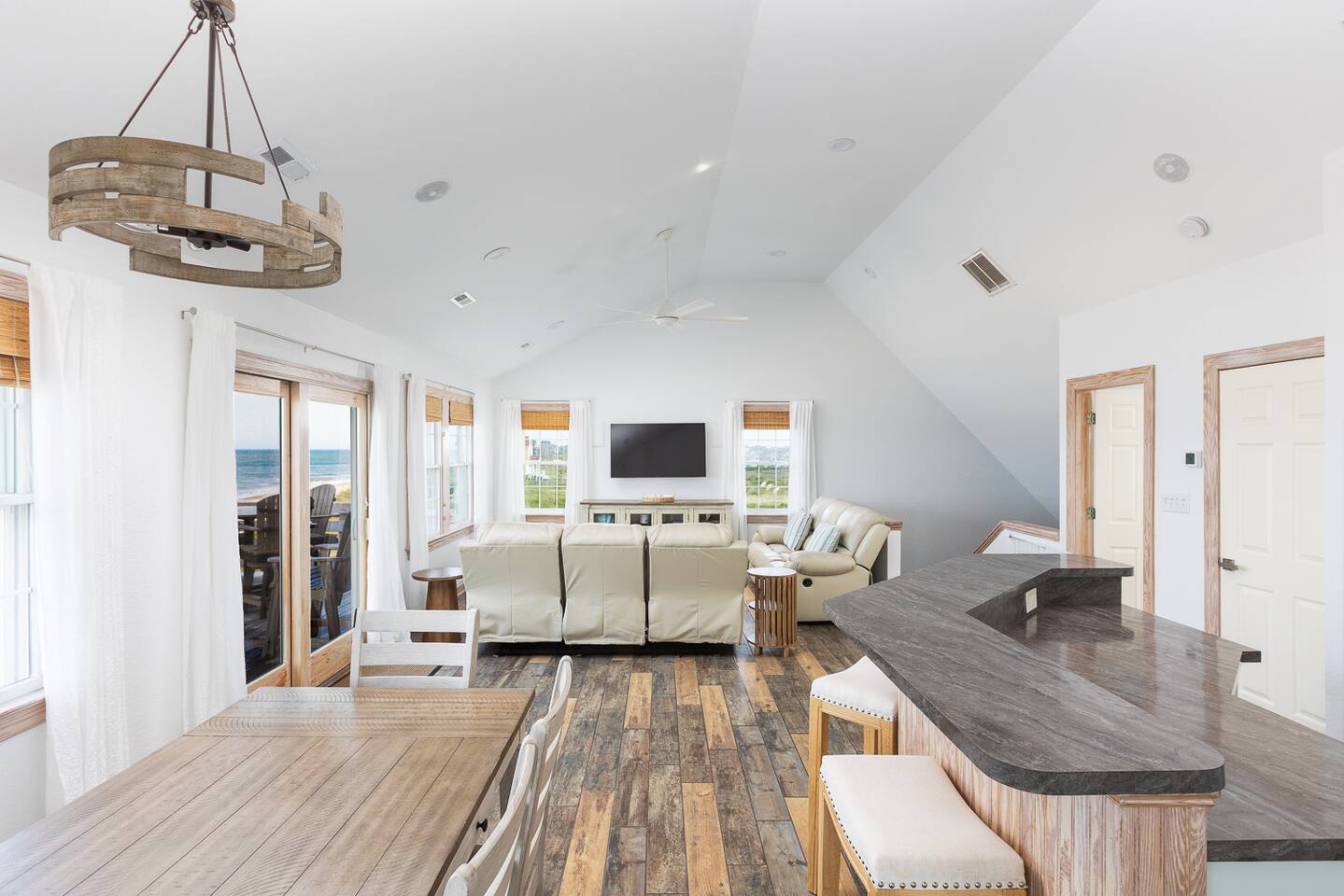 Welcome to Salt & Sand, your family’s much-needed breather from meetings, carpools, and cleats. This reverse living 5-bedroom beach house in Rodanthe, NC, offers stunning ocean views, a 6-person 3-season hot tub, and room for everyone, including the pets, to stretch out and reconnect. Just steps from the sandy beach, fast Wi-Fi to check in back home, Smart TVs, and a full kitchen, it’s where to-do lists vanish, and sunsets take over. You’ve earned this—book your reset at Salt & Sand.