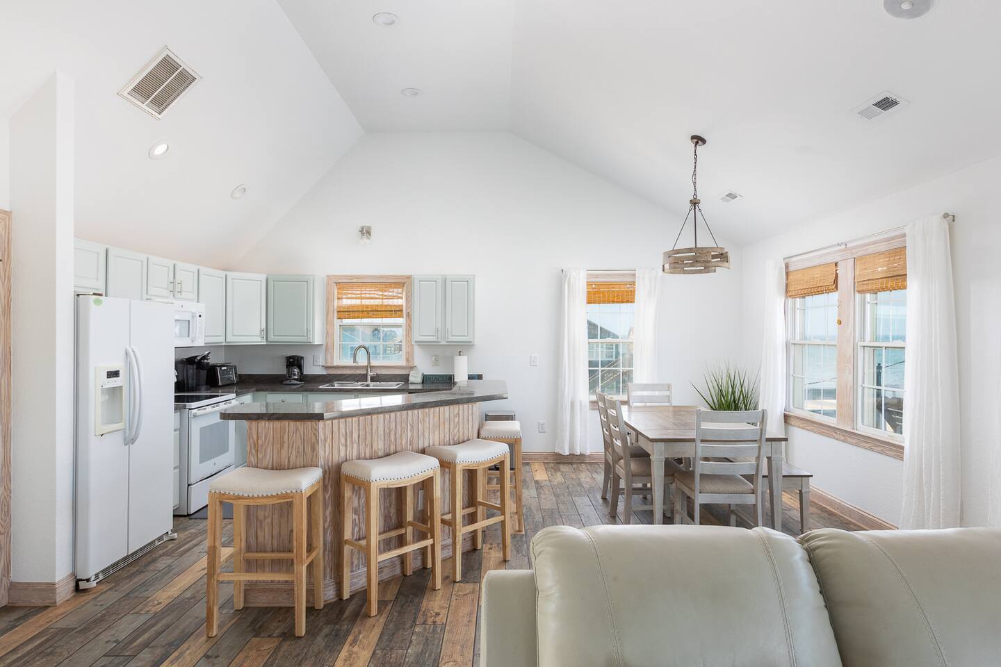 Our home is located on a quiet, family-friendly street. Just steps from the beach, you’ll hear the waves, feel the breeze. Our Neighbors are a mix of friendly locals and fellow beach-loving travelers. Whether you’re sipping morning coffee on the deck or taking an evening walk under the stars, this area offers the perfect backdrop for rest and reconnection. Rodanthe is the sweet spot of the Outer Banks: small-town charm, wide open skies, and easy access to everything from the Rodanthe Pier to fresh seafood, coffee, and kiteboarding lessons. This is the place where kids ride bikes, pets chase seafoam, and grown-ups remember what it feels like to actually relax.